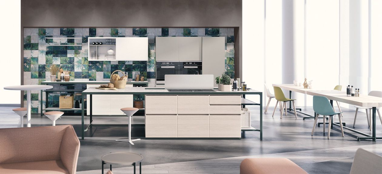 烹饪和餐桌功能兼具的一款中岛操作台,可搭配抽屉式冰箱、烤箱、电磁炉等,完成简单的厨房功能。